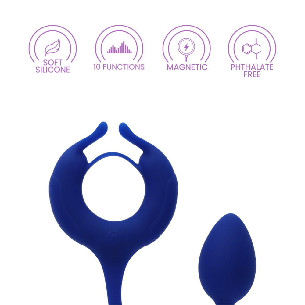 Whether you're craving a sensual sunset stroll on the beach or an X-rated romp in the sheets, the Admiral Plug and Play Weighted Cock Ring is your ticket to ecstasy. This silicone wonder features a vibrating enhancer, weighted egg, and 10 lusty vibration functions to thrill with every swing, thrust and tug. Tease your lover into a moaning mess with the flickering tickler or get cheeky with the anal probe. Dual motors target her hot spots for knee-quaking climaxes while the snug dual rings pump up your performance and staying power. Take the plunge with this waterproof vibe ring in the tub or shower and hold on tight. With a memory chip that recalls your fave setting and 1 hour runtime per charge, this passionate plaything will keep you swinging well into the night.