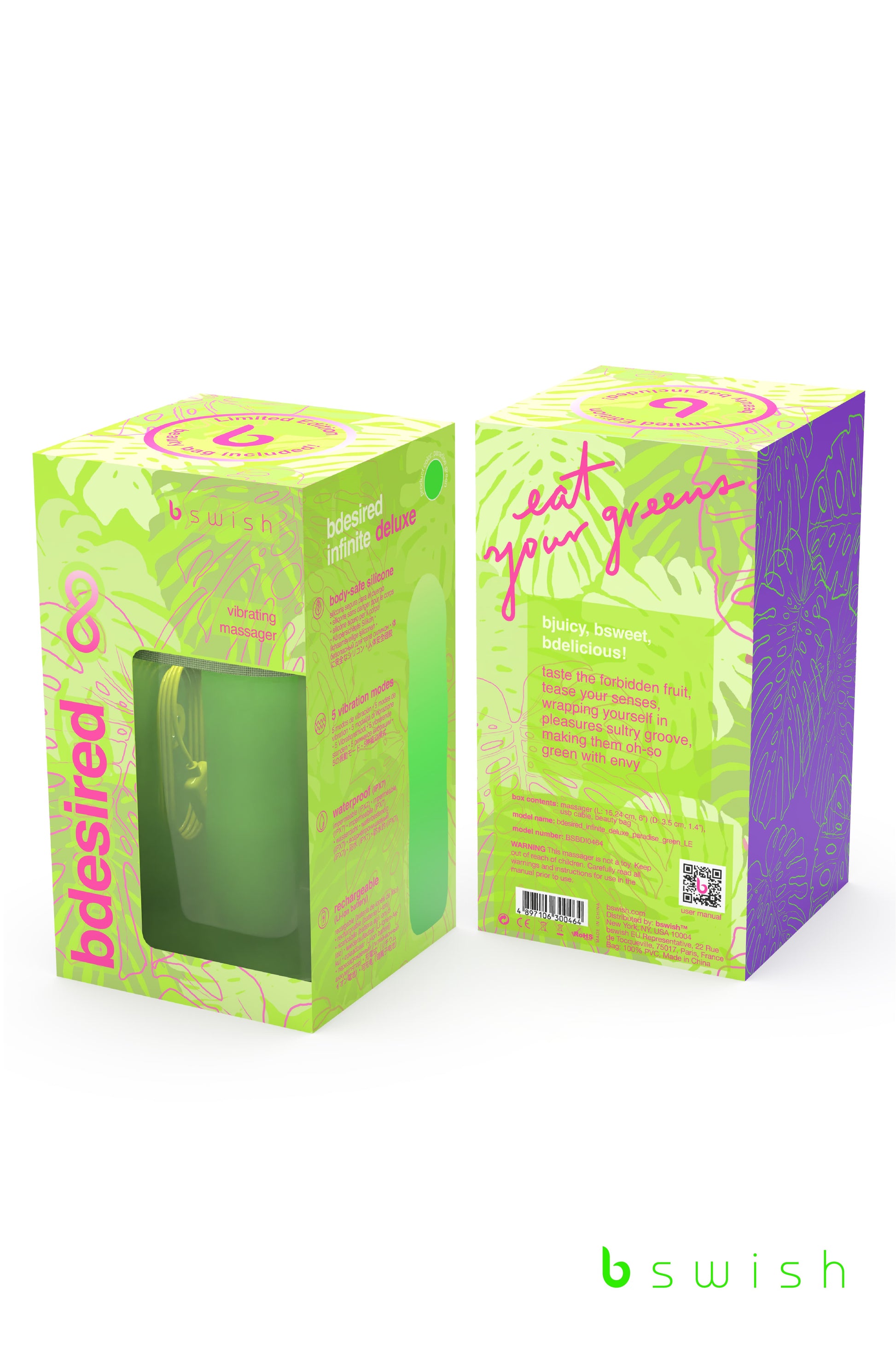 Caress its sumptuously soft, generous silicone, yielding to its touch. With five sensational intensities, you'll find yourself yearning for more as you embark on an unforgettable journey with the bdesired Infinite Deluxe Limited Edition – your all access pass to deeper indulgence!