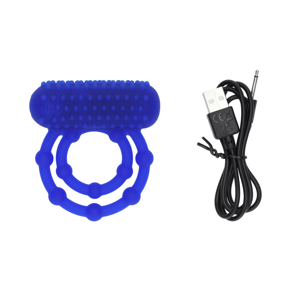 The Double entendres are everywhere in this powerfully playful package. Slip on this stretchy, silicone ring of pleasure and prepare to double your fun. The dual rings provide superior support and stamina while 10 strategically placed beads massage and maximize sensation along the full length of the shaft. Meanwhile, the studded stimulator delivers targeted tremors directly to your sweetest of spots with 12 vibration functions. Take the waterproof fun into the bath or shower and make some waves. With a memory chip that recalls your last thrill ride, this passionate plaything is ready to pick up wherever you left off. A 1.5 hour charge fuels the nonstop naughty. If more is better and two is always more fun than one, then this dynamic duo of rings is primed to please. Double the rings, double the beads, double the vibrations-double the pleasure is yours for the taking.