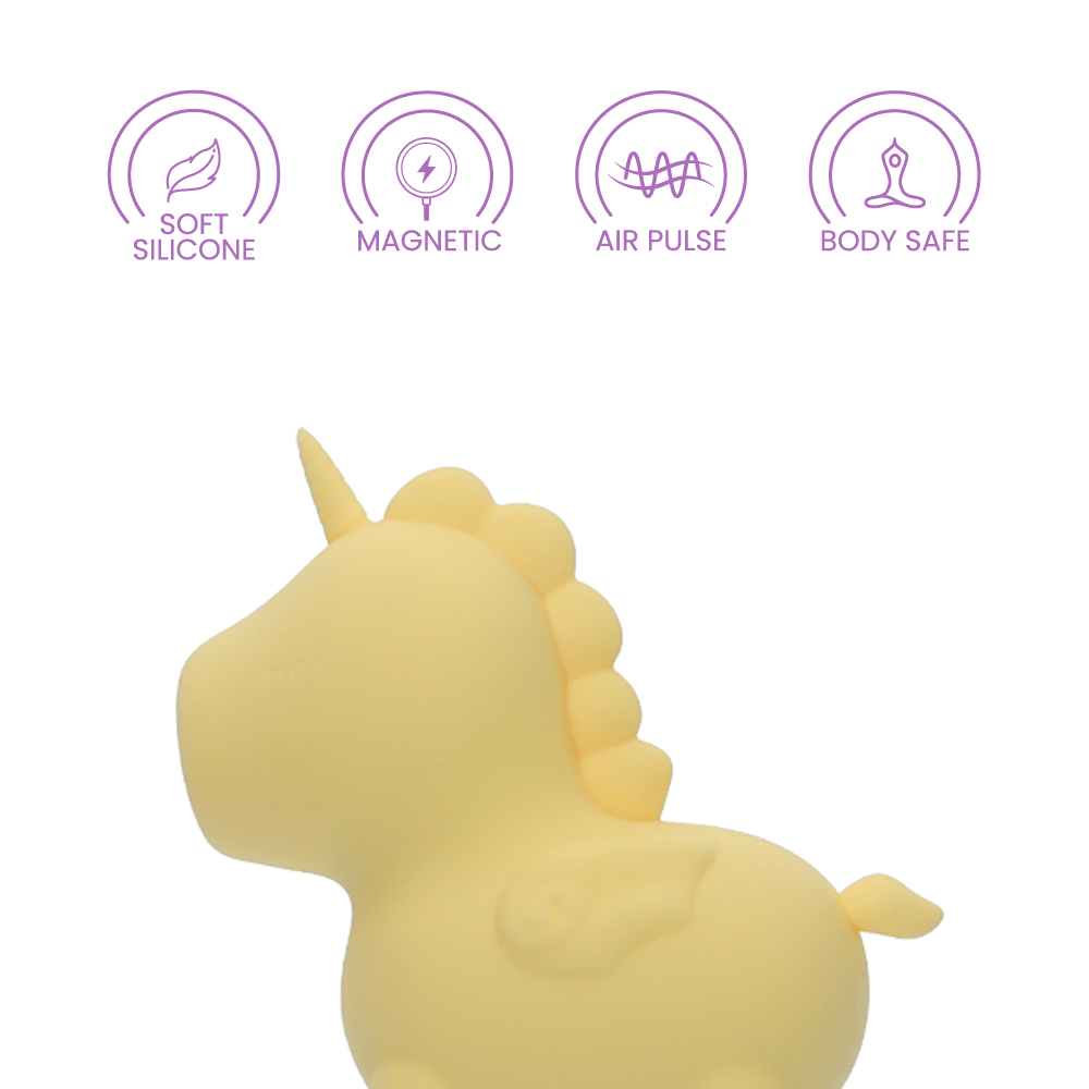 This unicorn's got more tricks up its sleeve than a Vegas magician and knows exactly how to make all your fantasies come true. Bean Blossom brings 20 toe-curling vibration patterns plus dual motors for an enchanting experience that's as powerful as it is playful. With a plush, rounded tongue and an eager-to-please mouth, this mythological creature aims to please in ways you've only read about in spellbooks. Water resistant and made of body-safe silicone, Bean Blossom invites you to a realm of ecstasy and wonder. Who knew unicorns were so adept at casting love spells? Consider this your invitation to a pleasure party hosted by the most bewitching creature of the forest. BYO wand optional.