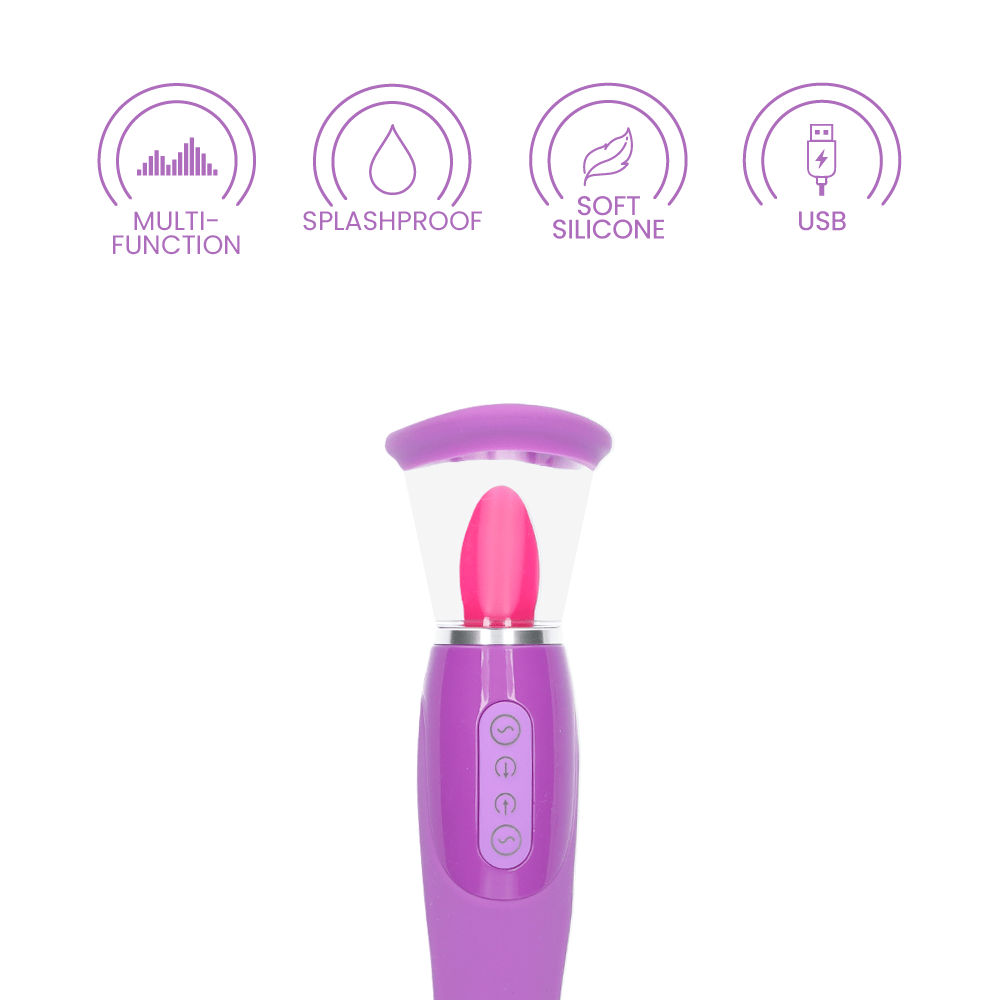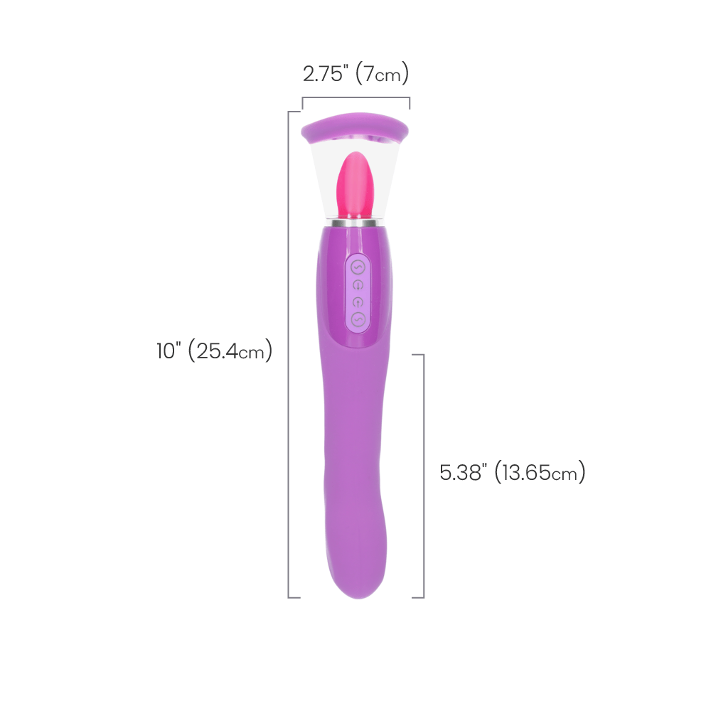 Smooth as silk yet powerful as an ocean tide, Fantasy For Her Ultimate Pleasure offers sensual stimulation through suction, vibration and a motorized tongue designed to lavish your lady bits with languid laps of pleasure. Press a button to activate the suction and nestle into the oval cup as tender oscillations milk your soft skin into a frenzy. Cycle through three suction patterns as a pulsing motorized tongue set to seven modes traces figure eights around your swollen sweet spot. Ten vibration modes rumble through the ergonomic handle for g-spot euphoria. Customize your climactic composition through suction, vibration and tongue stimulation in solo or together - this trinity of bliss builds to a crescendo of sensation that'll have you crying out in rapture. Recharge via USB and refresh in the afterglow with water and toy cleaner. Fantasy For Her Ultimate Pleasure - your dream lover realized.