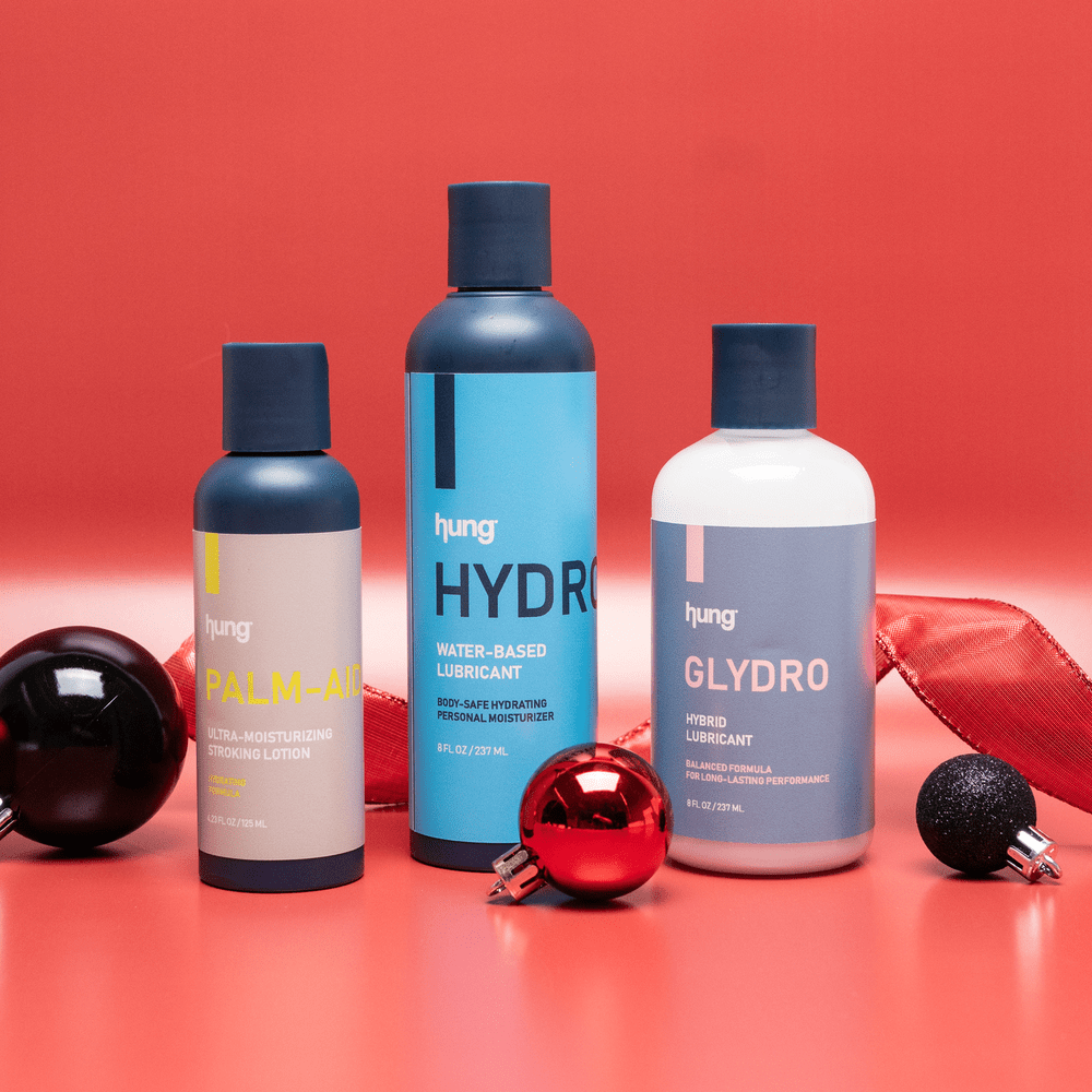- Your choice of: Hydro Water-Based Lube (8oz), Glydro Hybrid Lube (4.23oz), or Palm-Aid Stroking Lotion (8oz)
