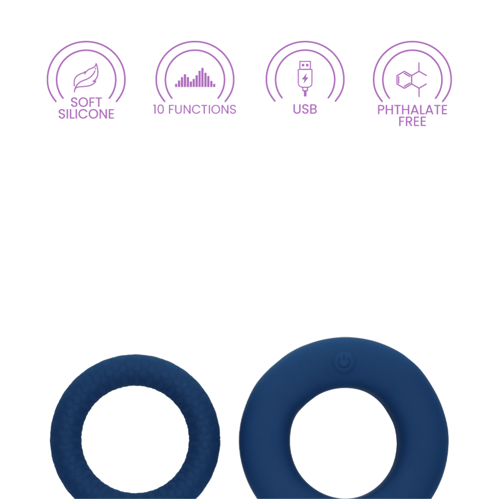 Experience a deeper, more satisfying connection for you and your partner with the powerful Link Up™ Optimum. The dual-density stimulator ring delivers intense pleasure with 10 powerful vibration functions, added Ultra-Soft™ textured support ring and one-of-a-kind seamless design. Indulge personalized pleasure by cycling through each of the 10 powerful vibration functions. The sleek seamless ring design with powerful dual motor stimulator is sure to send you and your lover spiraling into pure ecstasy. The additional Ultra-Soft™ silicone cock ring is made to elevate pleasure by increasing stamina, sensitivity and girth with a rubbed texture and tight squeeze. Look forward to an maximizing the pleasure experience for you and your partner while the dual ring combination holds tight. Men can enjoy increased sensitivity, stamina and girth with an explosive ending. While you ladies enjoy your man’s increased stamina and girth, the hands free shaking will send you spiraling towards a wonderland of pleasure. Embrace your lover in the bedroom, bath or pool side and get playful with over an hour of waterproof pulsations. Recharge pleasure and get back to playtime in only 45 minutes with the provided charging cable. This astonishing ring knows exactly what you want by using a state-of-the-art memory chip to pick up on the last function used.
