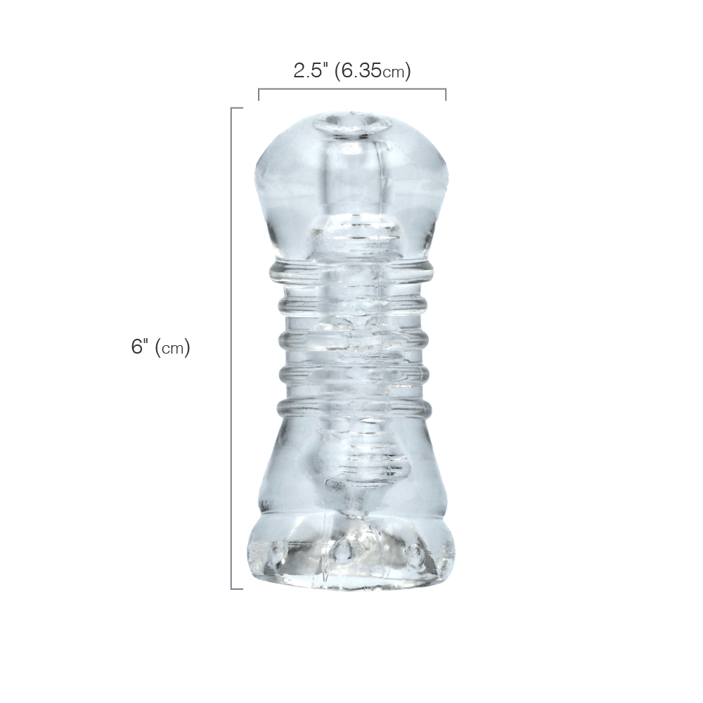 JERK stoker JO toy rubs you just right...multi-ribbed inside to stroke as hard or soft as you like. Easy grip "dumbbell" shape stays in your lube-covered hand, grip it tight for max sensation, looser for a long stroke. This toy sucks...suction builds up in the tip where you want the most friction. It's made of our blubbery-strong FLEXtpr so it's soft and squishy on your junk.